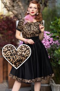 Cette robe trapèze style années 50 présente un col bateau rétro boutonné, des manches courtes à ourlet vichy, une taille ajustée flatteuse et une jupe fluide. Cette superbe combinaison est confectionnée en coton doux légèrement extensible et se ferme sur le côté par une fermeture éclair dissimulée.