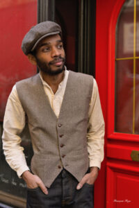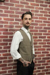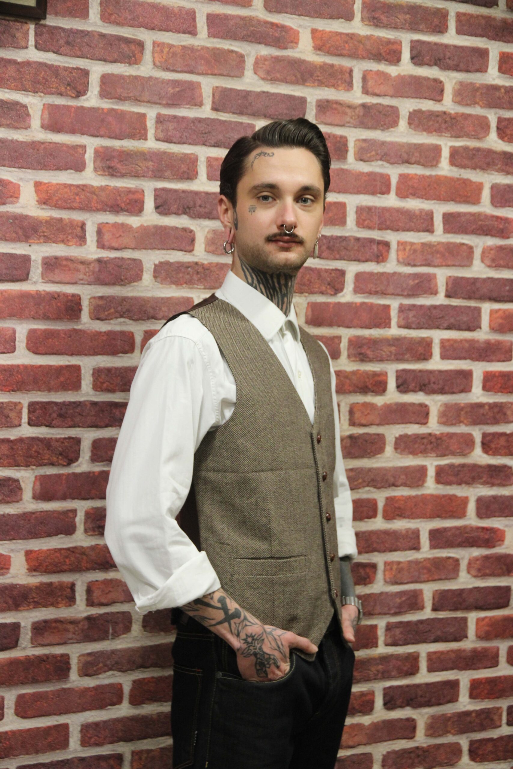 Gilet sans manches ajusté a la taille par sa martingale cousu à l'arrière .