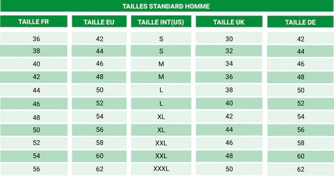 Tableau des tailles