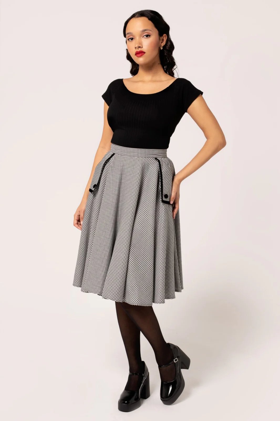 Jupe pied-de-poule noire et blanche